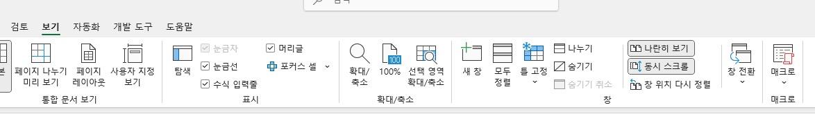 나란히 보기 먼저 클릭해야 동시 스크롤을 사용할 수 있다는 점을 기억하자.