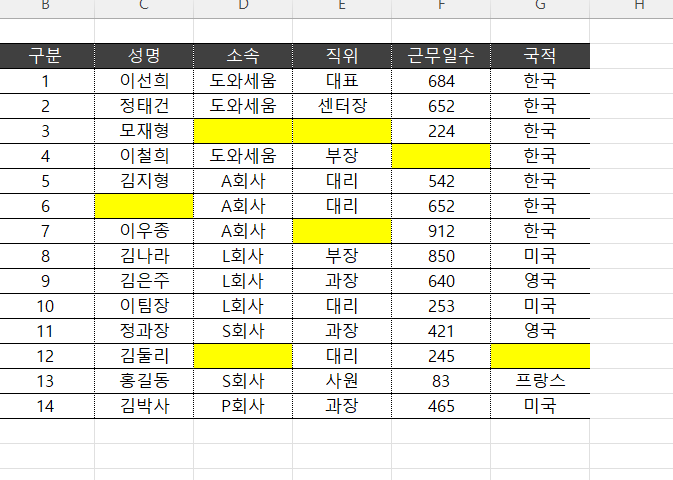 - 보고서를 만들 때, 조건부 서식을 이용하여 빈 셀을 표시하면 데이터 넣은 거 까먹을 수도 있는 걸 방지해준다.